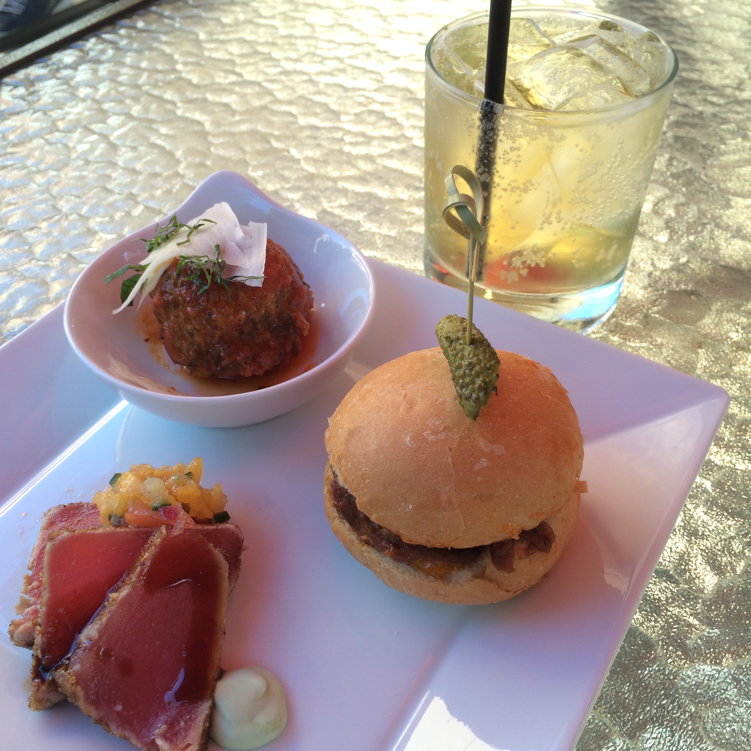Tasting Plates began at check-in with a surprising discovery at Harold’s Bistro & Bar, a bright, sunny courtyard patio (above) awaited patrons. Located in the heart of the Sheraton Vancouver Airport, alongside the hotel’s pool, the patio is oasis in the midst of Richmond high-rises. The Harold’s Bistro & Bar Chefs served a Tasting Plate consisting of Five-spice rubbed Tuna Tataki with papaya relish, Italian Meatball with shaved Asiago, Pulled Pork Sliders the plate was paired with a refreshing glass of Somersby Cider.