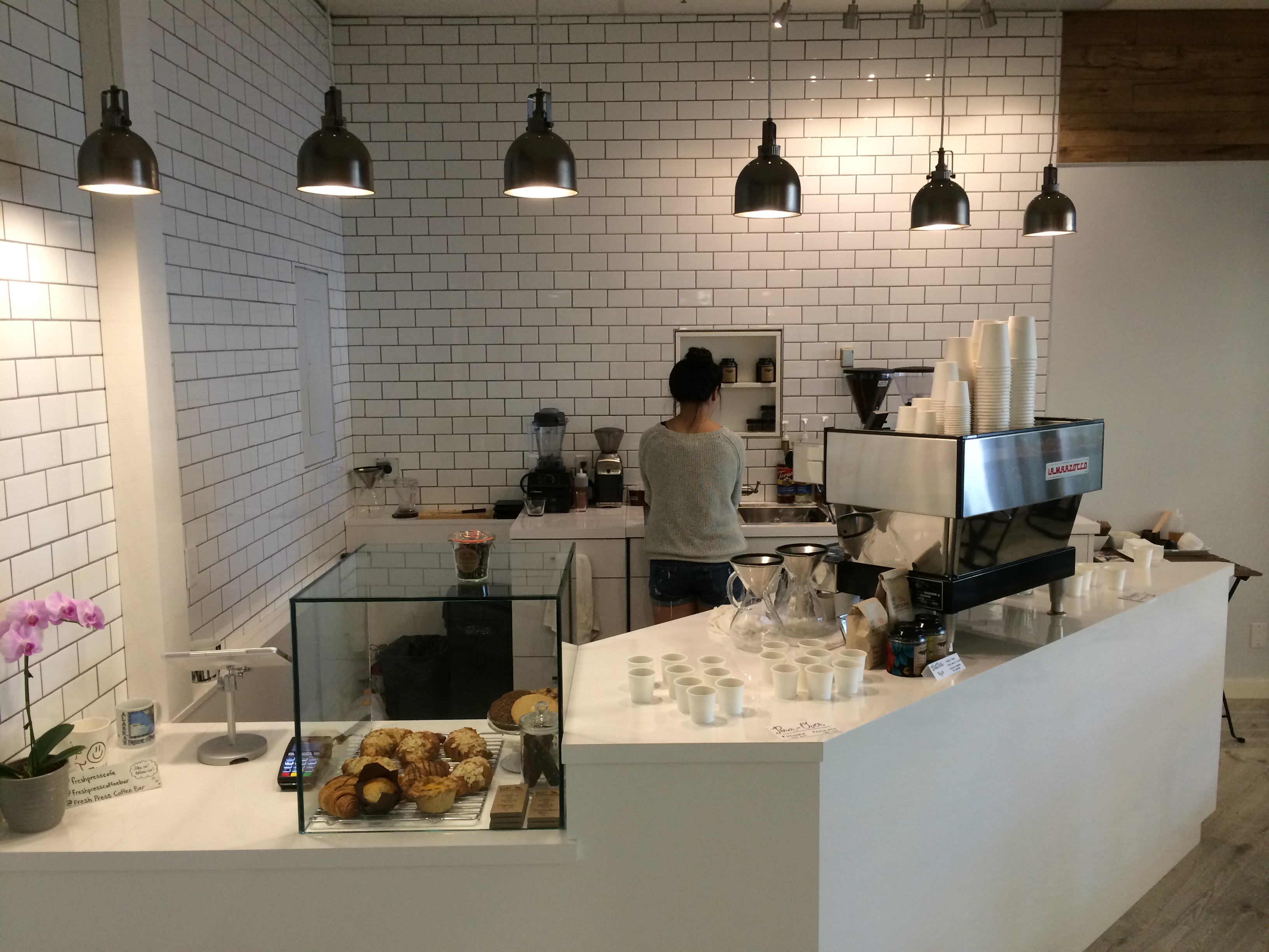 Down the road to the corner of Alderbridge and No 3 Road, we found another surprise at Fresh Press Coffee Bar. A bright contemporary coffee house tucked in the centre of the complex, the three month cafe is a stand-out amongst the mix of office, retail and restaurants. Owner and barista Questa was serving fresh brewed Pour Over Coffee, Affogato (Espresso & Gelato) and London Fog (Steamed Milk & Earl Grey Tea) along with a house baked Almond Croissant.