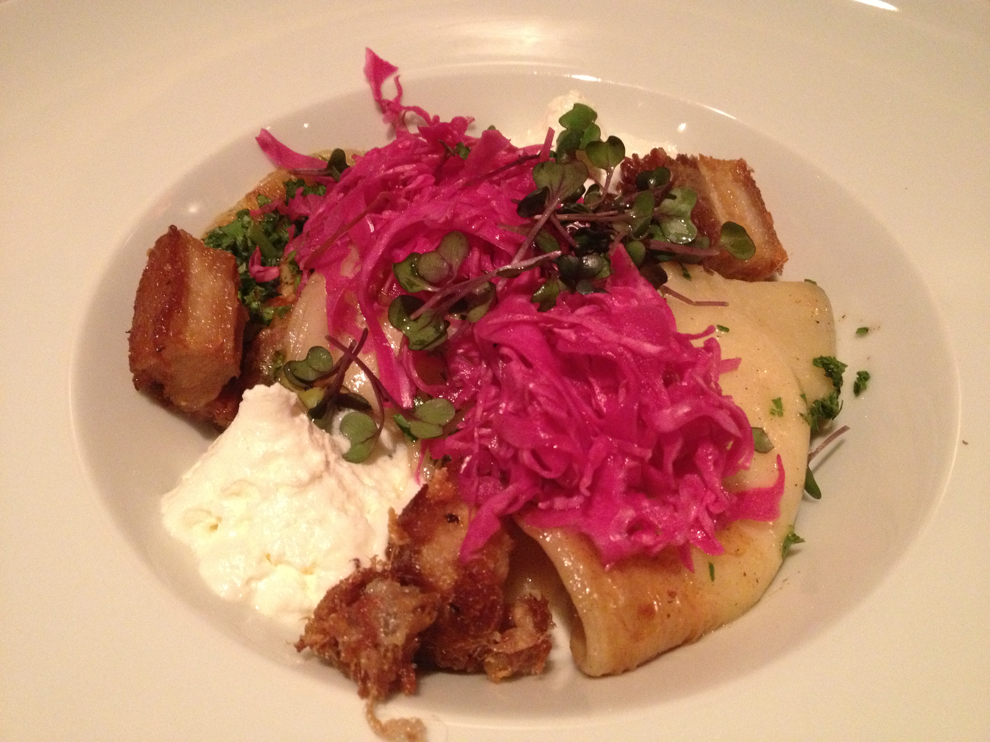 While some of the item are not on their regular menu, the Dine Out menu ($38) gave us a great taste of the local, farm-to-table, organic fare that the restaurant has been famous for since opening in 1992. Also renowned for their extensive wine list, the Dine Out wine pairings were sure to be well chosen and the cocktails were simple, tasty and traditional. Fresh, hot rolls with butter and Vancouver Island sea salt helped pass the time while we decided on our orders and waited (not long) for food to arrive.