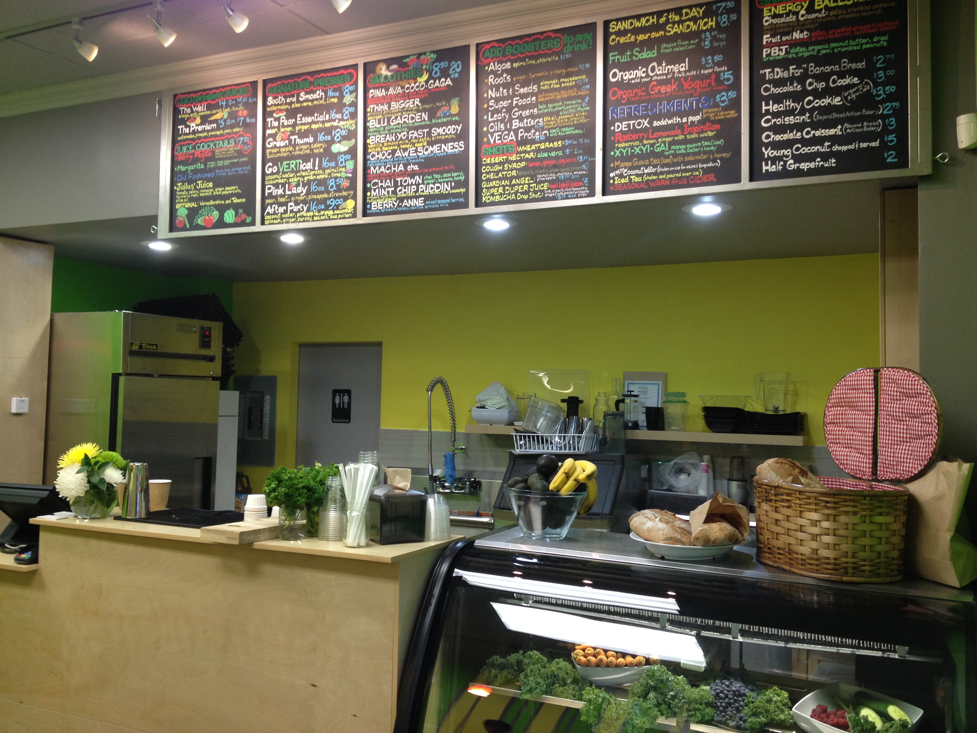 Last night they opened the doors for a preview and everything we sampled was great; fresh and bright “Sooth & Smooth” (watermelon, aloe vera, mint & lime), rich and decadent “Pina-Ava-Coco-Gaga” (coconut water, milk & meat, Avocado, vanilla & pineapple) or hearty, protein filled “Choco-Awesome” (almond milk, peanut & apple butter, raw cocoa, honey, banana, apple & VEGA Protein).