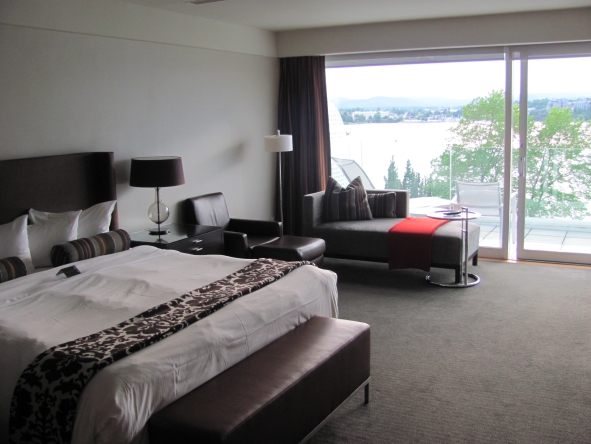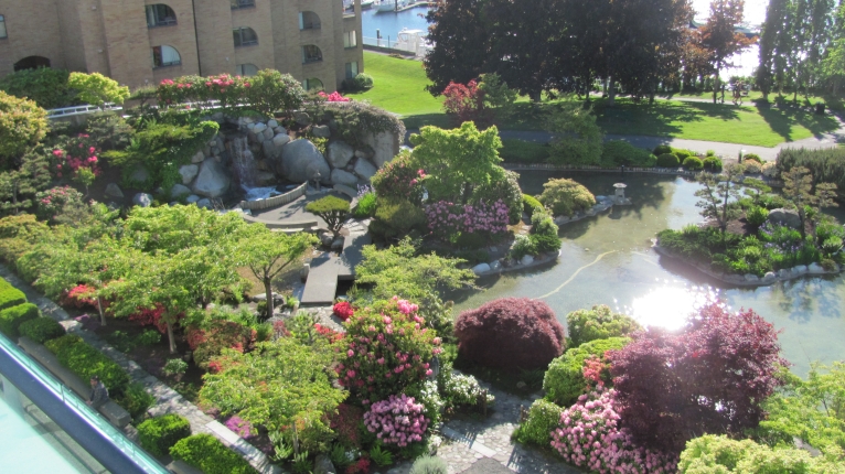 Located at the end of a no-through street with only the harbour and some quiet condominiums as neighbours the Inn is positioned to offer each guest room great views over the water. The wings of the hotel wrap around a beautiful Japanese garden featuring meandering stone paths, ponds and waterfalls. As you wander, you may catch the chef of Aura Waterfront Restaurant and Patio, located just off the hotel lobby, tending to his herb garden. I know first hand that the Gardens make a great location for weddings and celebrations.