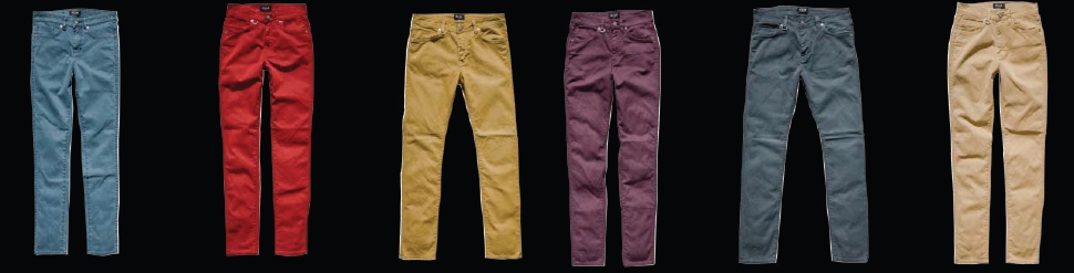 Warm, burnt tones of brick, sun bleached straw, cool slate, deep rich wine and jewel tone jade sound like the colours of leaves changing but instead they’re the palette for Neuw Black Colour denim.