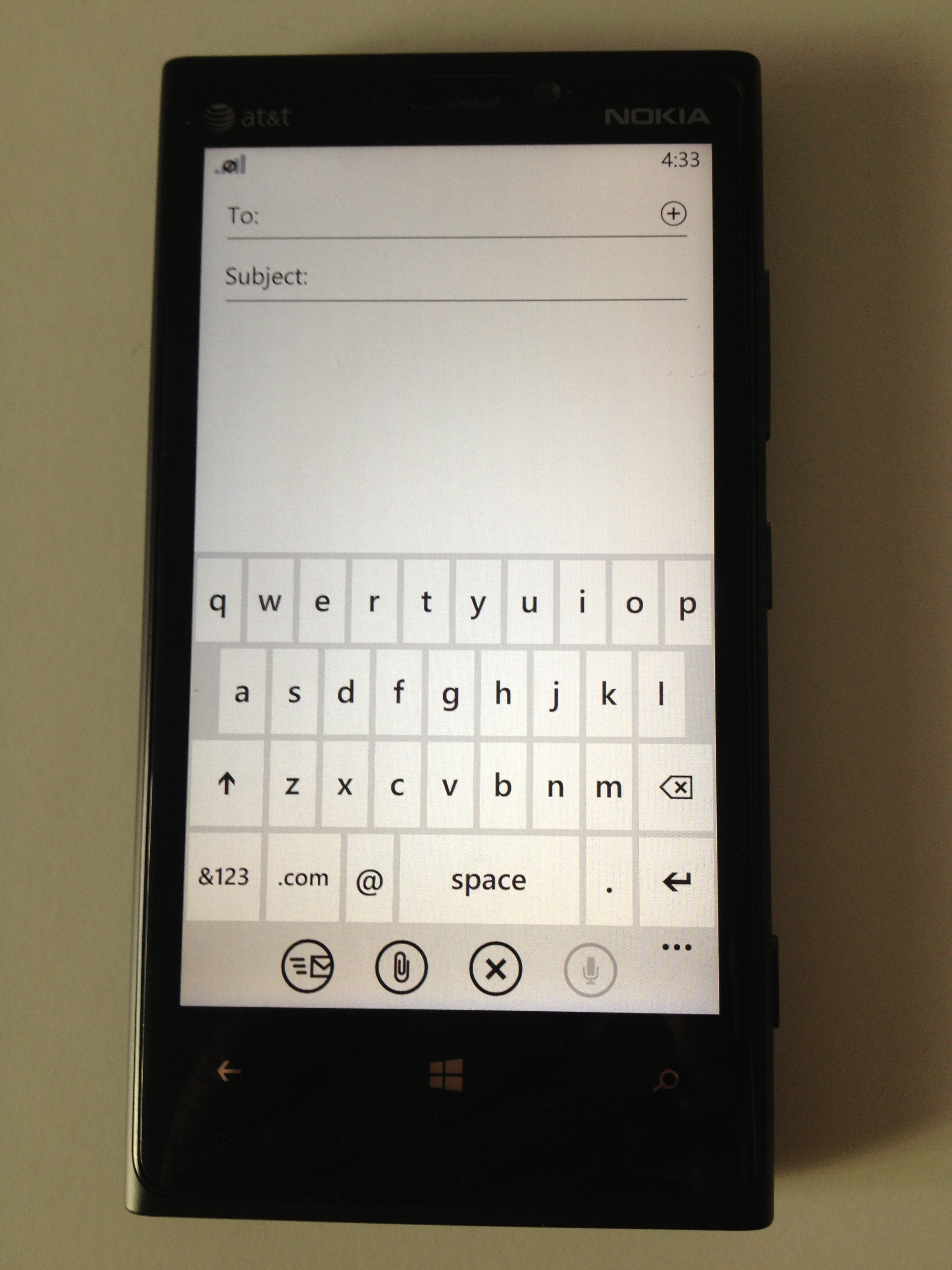 The best business app included with this phone is built-in Office; Word, Excel, Powerpoint are all fully working versions and sync to your desktop versions when connected to your Windows Skydrive account. It’s great to be able to truly work on the go and be able to easily switch from mobile to desktop. Windows “People” App is a great way to keep tabs on all your contacts and see what’s happening with their social media accounts, everything all in one place with simple to swipe views. The built-in Bing browser includes a QR Code / Microsoft Tag scanner as well as a Shazam-type music app. “Me” is a nice spot to find everything about yourself, you can connect your Windows, Twitters & Facebook accounts to see all the activity in one easy list. While a unified email box would be handy, the email boxes are clean, simple and easy to use. The touch keypad has the right amount of sensitivity and the adjustable audible clicks make it easy to use.