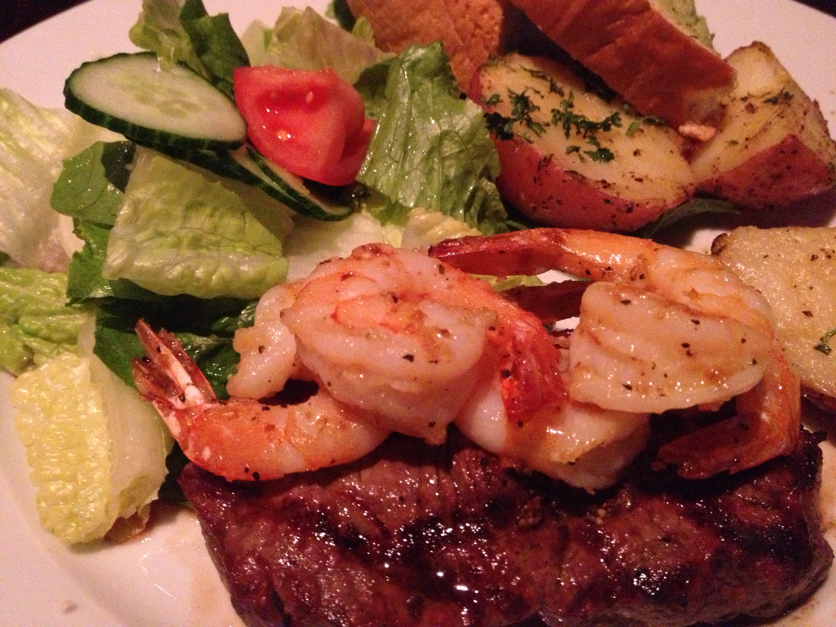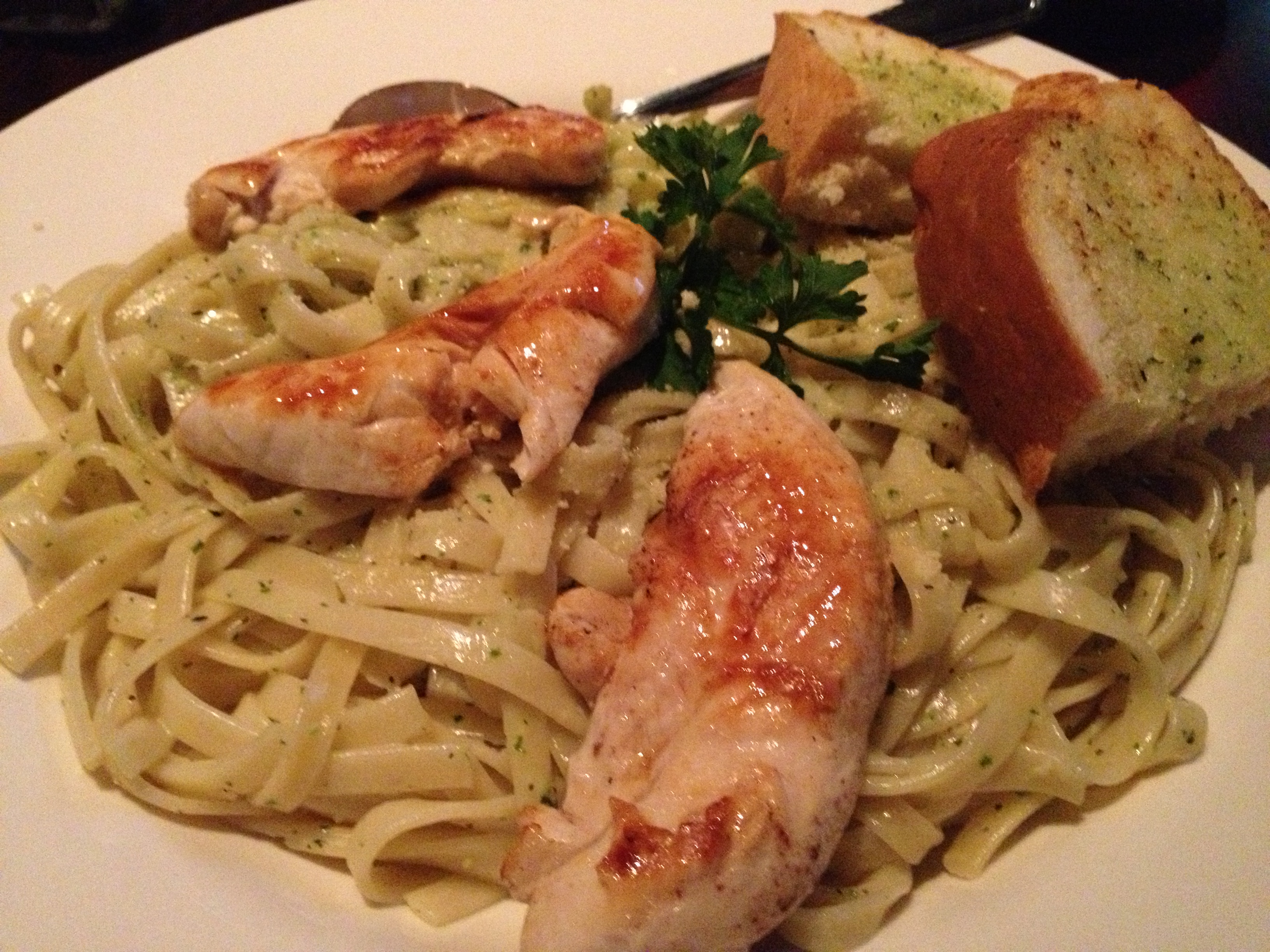 Starting off, with a plate of calamari, which were well done although the tzatziki was a bit thick and bland but not enough to make it a negative dish. For mains, my dinner companion had New York Steak and Prawns which was served with roasted potatoes, green salad and garlic bread. The decent serving, on special for $9.95, was simply dressed and flavoured, grilled prawns were lightly seasoned and the steak was cooked as ordered. The chicken fettuccini alfredo for my main was an ample serving of pasta and grilled chicken breast with garlic bread. Lightly sauced and seasoned, the pasta was however slightly overcooked to my liking. Overall we were pleased with our meals, as well as the bill, enough to return again. This seems like the right kind of place the neighbourhood needs, rather