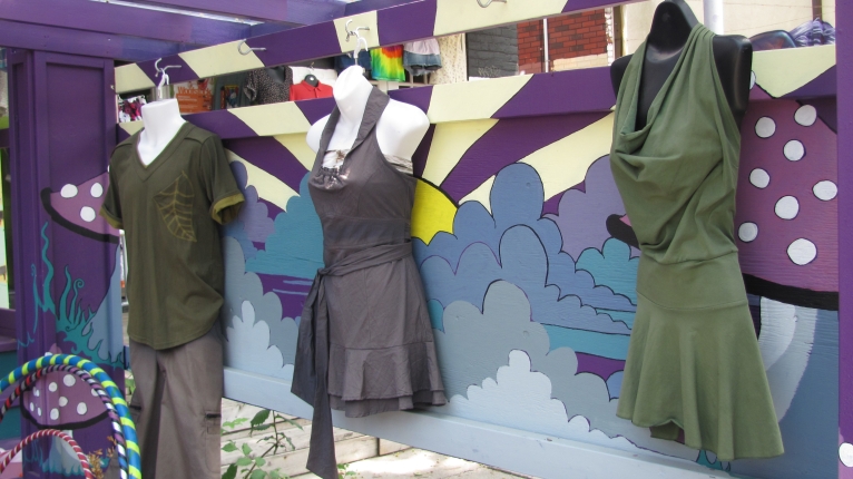 vintage garments hang out beside new pieces from local designers which are nearby to a lively Caribbean Cafe.