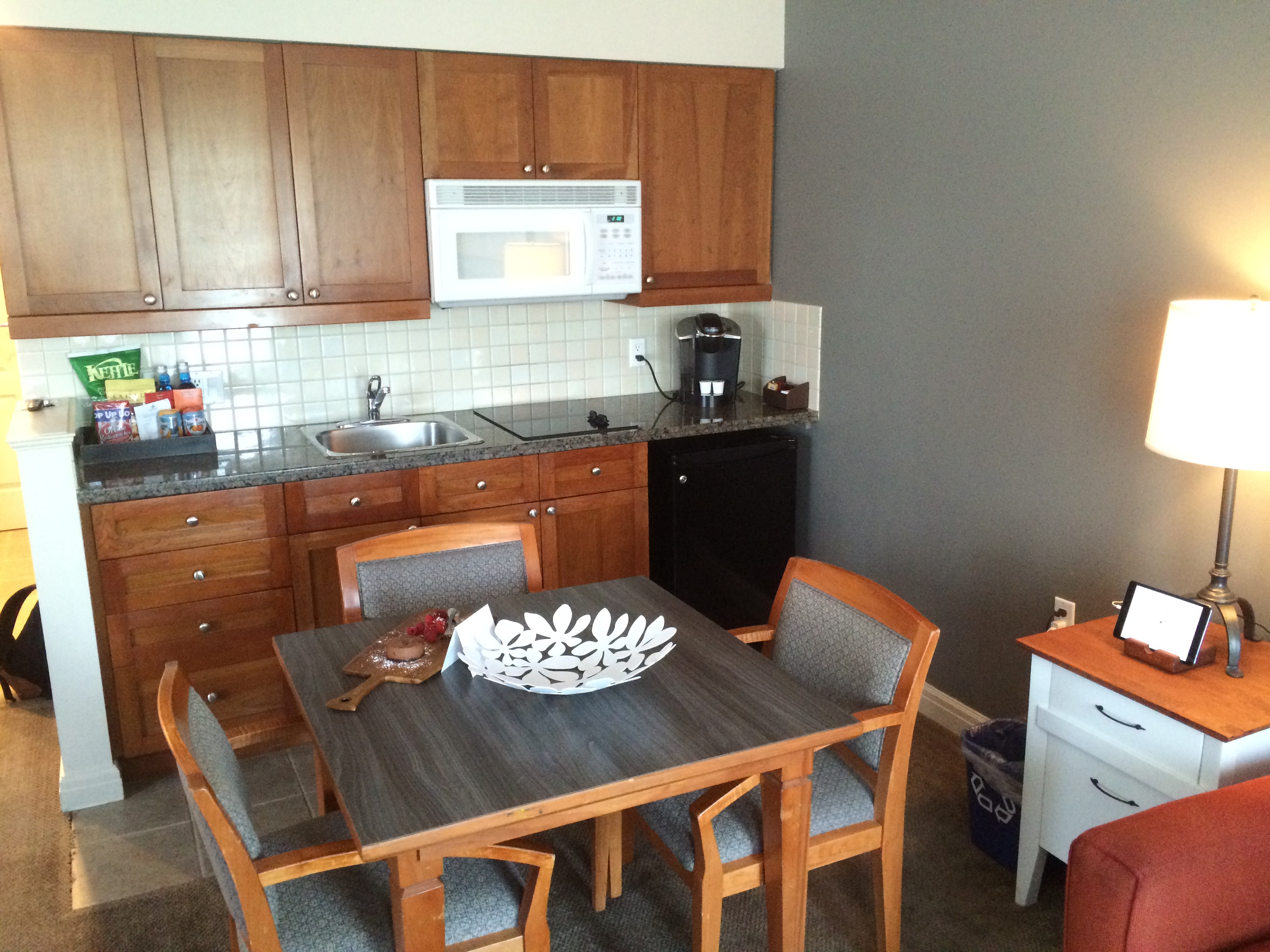 Starting at check-in, the friendly staff (and possibly their dogs, the hotel is very pet-friendly) greet you at the front desk, where you’ll also find lemon water, fruit punch a complimentary candy-corner (penny candy bar) and uniquely a rent-a-fish Beta Fish named “Beau” can keep you company in your suite. In-room iPads, free wi-fi, Keurig coffee systems, Malin + Goetz bathroom amenities, free bike rentals for guests, discounted Spitfire Scooter rentals (adjoining the hotel lobby), and a “Honour Store” with free coffee, tea and hot chocolate with loads of topping options are just a few of the little benefits that really make your stay unique.