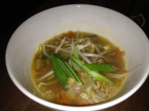 The two entrees, Nasi Goreng – perfectly spiced rice, chicken and shrimp combined and topped with a perfectly fried egg and Peanut Noodles – thick noodles with shitake mushrooms, eggplant and a rich peanut sauce, are ample and rich with flavour, making the other bowls on the main menu a temptation for future visits.