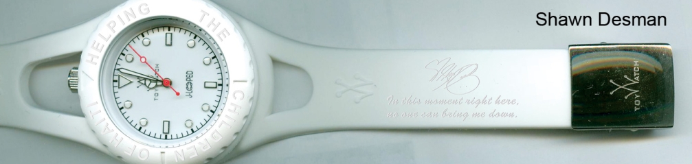 straps. In partnership with Universal Music Canada, who put the word out to its artists, Toywatch teamed with Shawn Desman, Down With Webster, Fefe Dobson and Reema Major who each provided one of the designs and and signed on to be ambassadors of the project to help it reach its goal of 2675 watches. In reaching the goal, Free The Children would be able to build, furnish and supply 4 classrooms plus help keep the children healthy by building clean water and sanitation systems, latrine and handwash stations.