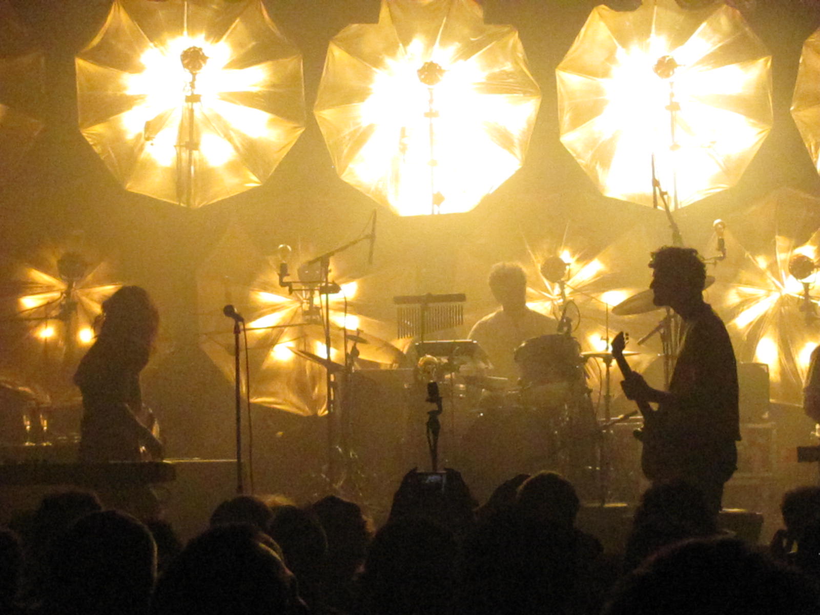 The Alt-Rock trio of Amedeo Pace, Simone Pace and Kazu Makino played a beautiful 80 minute set to a small but dedicated crowd who ate up every word. Not that there were many words spoken by the group, other than …thank you very much“ as they left the stage. The music was beautiful and the light show was excellent, a simple set of photographer’s lighting foil umbrellas gave a unique atmosphere. Each of the members of the band were amazingly lit, their white costumes at times making them almost ethereal, as though we were blessed to have witnessed this performance.