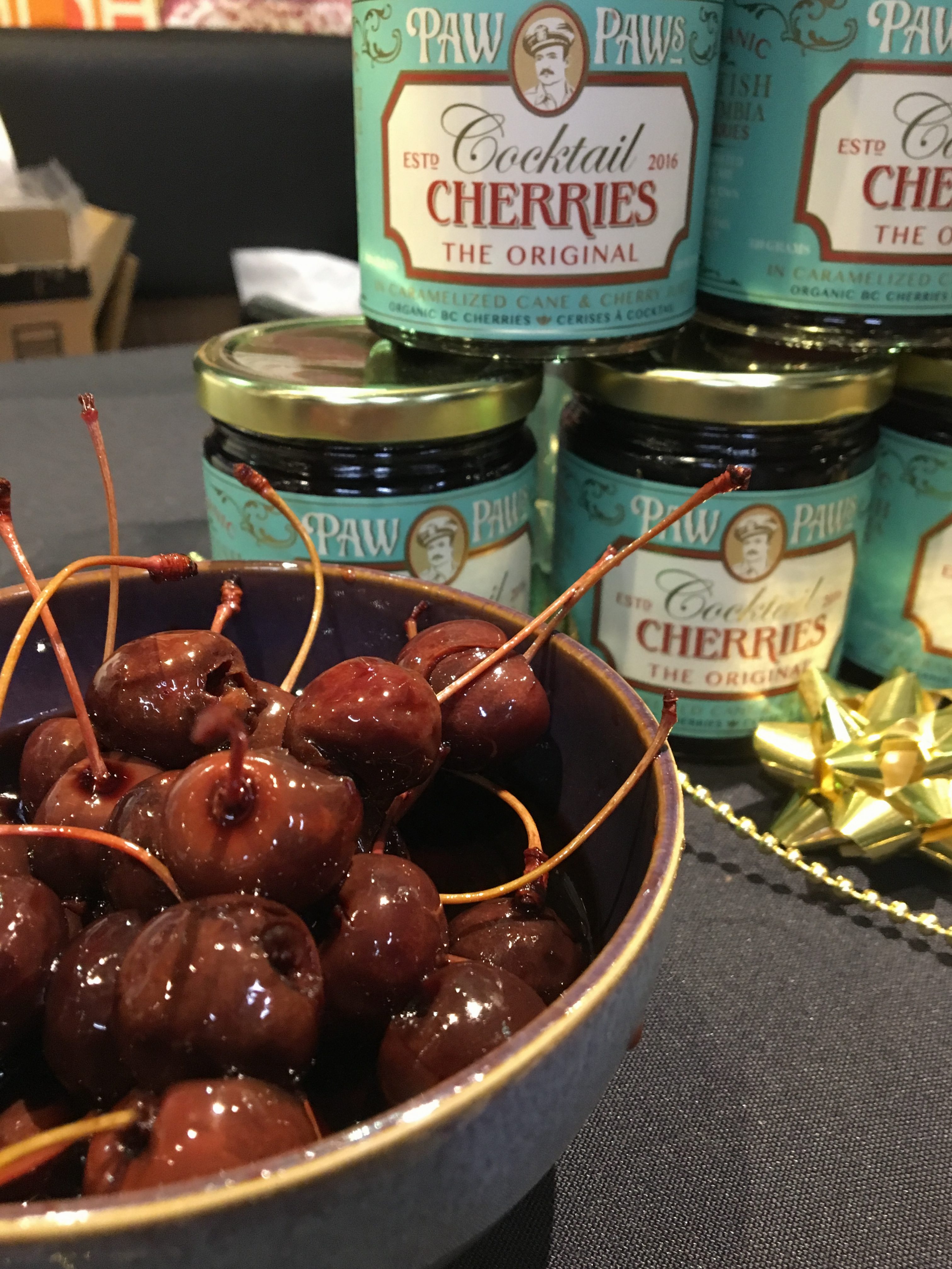 Paw Paw’s Cocktail Cherries: Paw Paw is a Southern US term of endearment for Grandfather, who in this case, is on the bottle of these sweet, tart and perfect cocktail cherries.